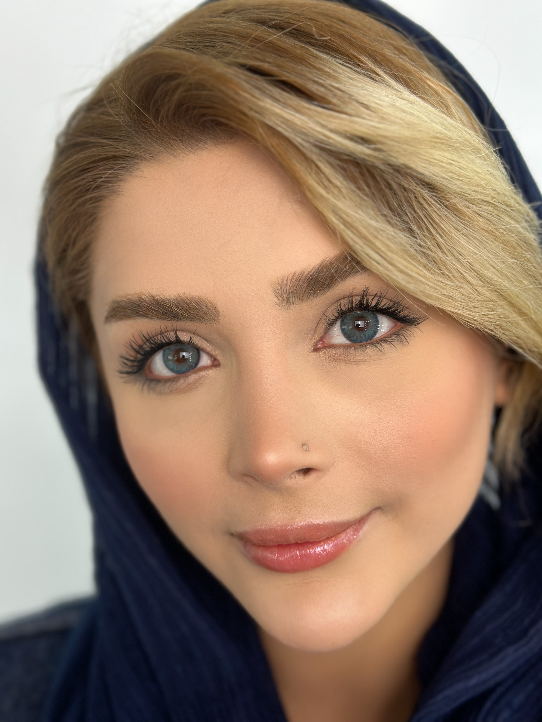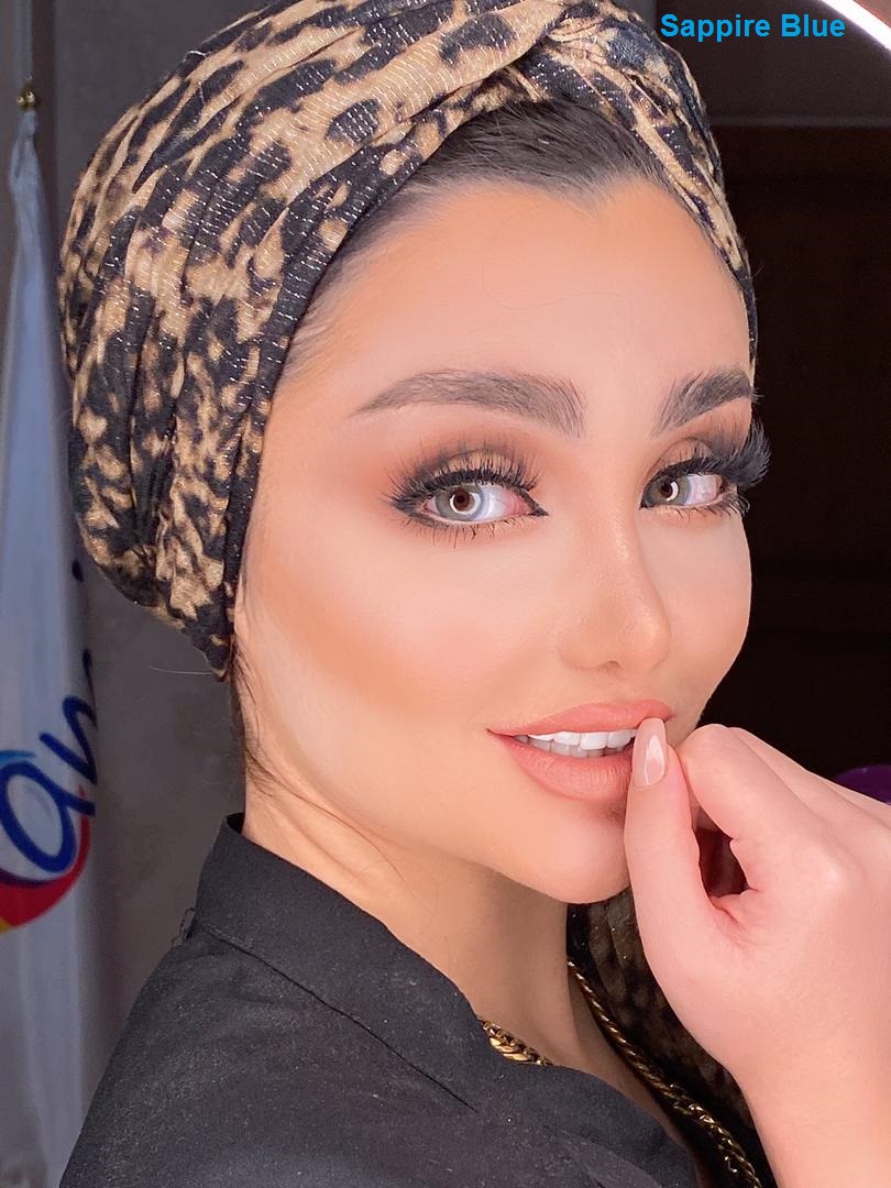 لنز طبی رنگی آبی عسلی بدون دور طبیعی سفیربلو آیس کالر